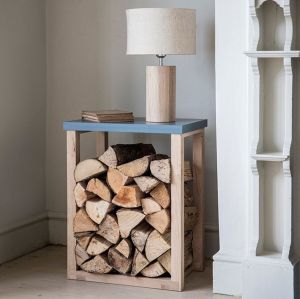I LOVE this Clockhouse Log Table available from Grace and Glory Home for £165 – Made of oak with a painted wooden top, it stores logs neatly and provides valuable tabletop space for lamps, books, or cups of tea!
