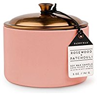 Amazon sells a Paddywax ‘Hygge’ Rosewood And Patchouli Scented Candle. Dimensions (HW): 6cm x 8.5cm . Ceramic vessel with copper lid and soy wax blend at £15